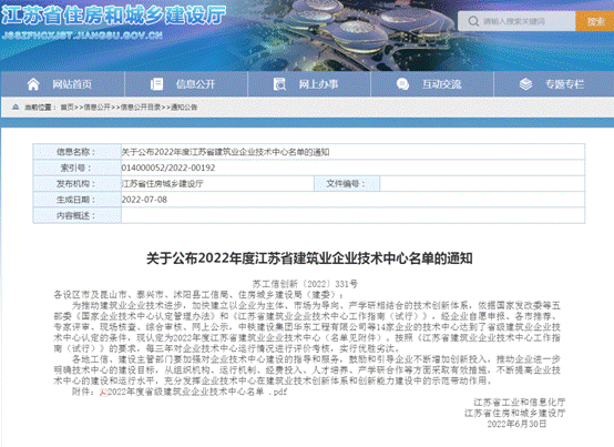 近日,江蘇省工業(yè)和信息化廳、江蘇省住房和城鄉(xiāng)建設(shè)廳以蘇工信創(chuàng)新〔2022〕331號文件公布了2022年度江蘇省建筑業(yè)企業(yè)技術(shù)中心認定名單,集團公司名列其中,成功獲批省級企業(yè)技術(shù)中心, 標志著集團科技創(chuàng)新工作取得了重要突破。