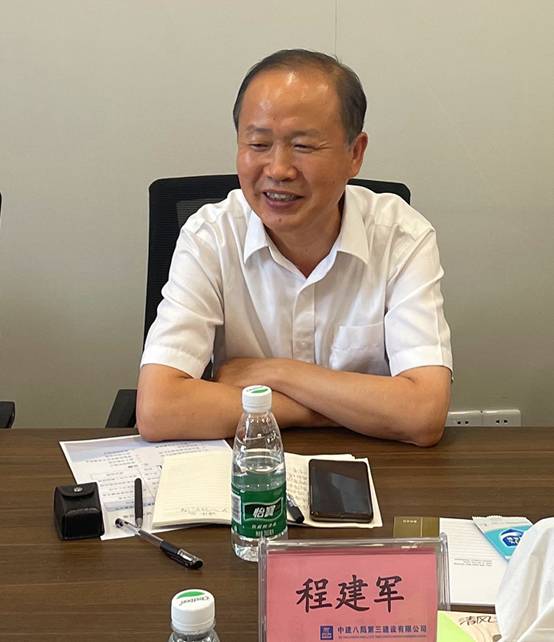中建八局三公司專務(wù)程建軍、副總工程師沈興東、技術(shù)中心主任黃峰等熱情接待董事長之行。交流會上,程總對集團(tuán)一行的到來表示熱烈歡迎,結(jié)合八局三公司宣傳片,介紹了三公司的發(fā)展歷史和新形勢下的發(fā)展戰(zhàn)略。