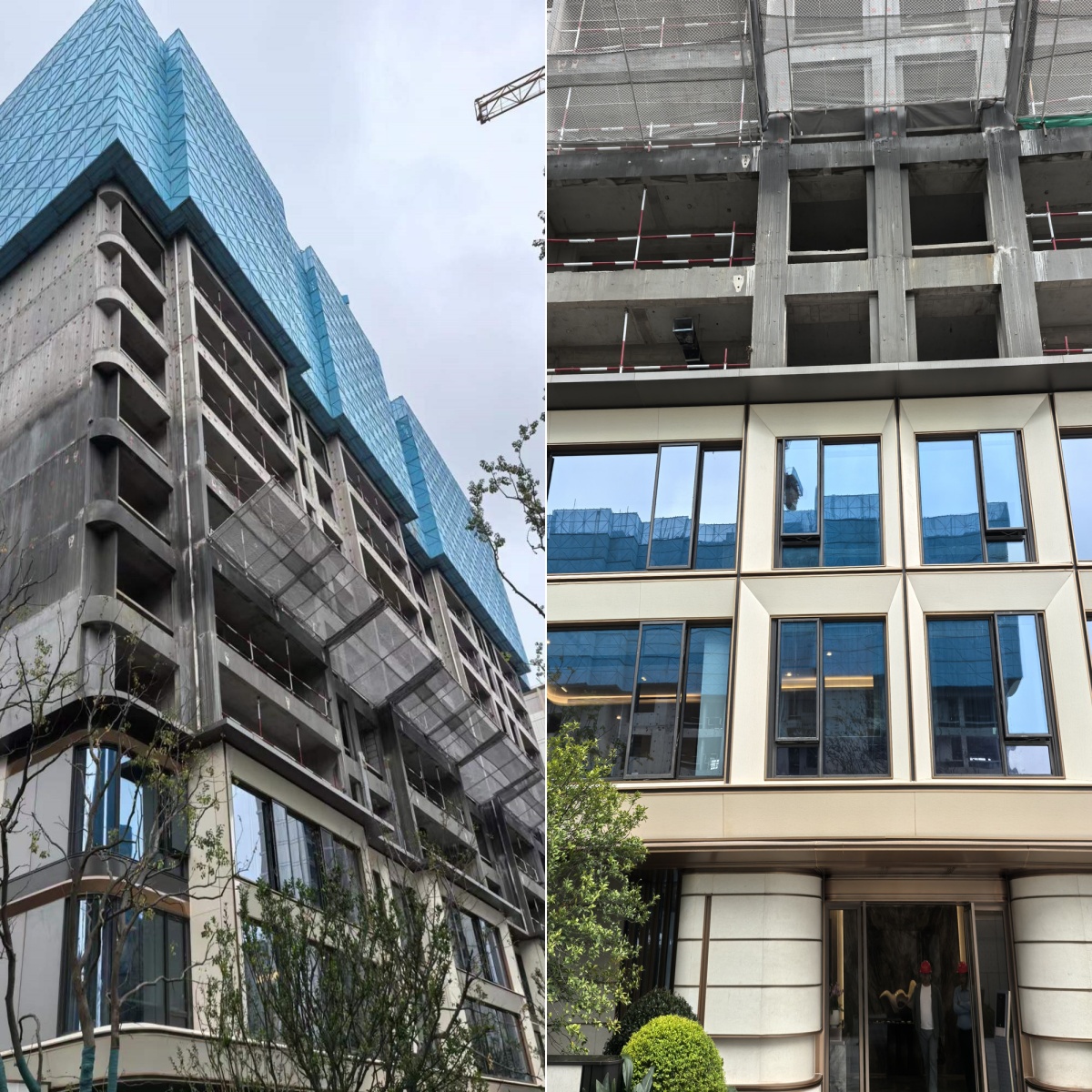 為確保項(xiàng)目質(zhì)量和安全,項(xiàng)目部在施工過程中采用了多項(xiàng)先進(jìn)技術(shù)和管理措施——鋁膜支撐系統(tǒng)、附著式腳手架、盤扣外腳手架+鋼板網(wǎng)、高桿噴淋系統(tǒng)等,不僅提升了施工效率,還顯著提高了安全文明施工標(biāo)準(zhǔn)和質(zhì)量管控水平。同時(shí),項(xiàng)目部還克服了施工環(huán)境復(fù)雜、分包單位穿插作業(yè)以及夏季高溫等不利因素,確保了項(xiàng)目的穩(wěn)步推進(jìn)。