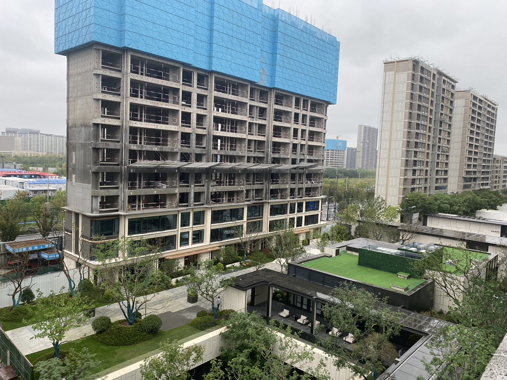 目前,項(xiàng)目是外裝飾、二次結(jié)構(gòu)、主體結(jié)構(gòu)的三階段同步施工,項(xiàng)目部按業(yè)主要求,與分包單位精心謀劃、組織實(shí)施。同時(shí),為保證樣板展區(qū)訪客安全,項(xiàng)目部還創(chuàng)新采用了后掛式挑網(wǎng)等安全措施,進(jìn)一步提升了施工現(xiàn)場(chǎng)的安全保障水平。從外立面看,項(xiàng)目層次分明,立體感強(qiáng),展現(xiàn)出獨(dú)特的建筑美感。