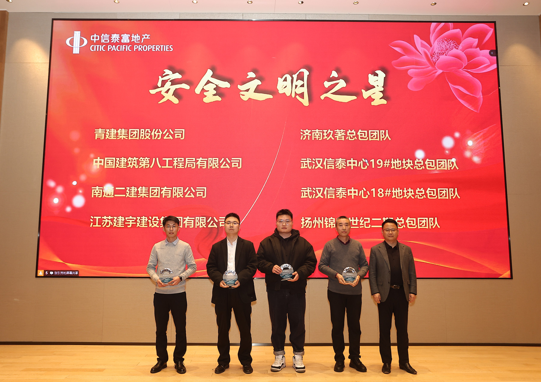 會(huì)上,集團(tuán)憑借在安全文明施工管理方面的卓越表現(xiàn),從眾多優(yōu)秀的供應(yīng)商中脫穎而出,榮獲了中信泰富地產(chǎn)年度安全管理類的最高獎(jiǎng)項(xiàng)——“2024年度安全文明之星”獎(jiǎng)。僅有四家總包單位獲此殊榮,這一榮譽(yù)是對集團(tuán)長期以來堅(jiān)持精細(xì)管理、尤其是對揚(yáng)州錦麟世紀(jì)二期項(xiàng)目部狠抓安全管理的充分肯定。