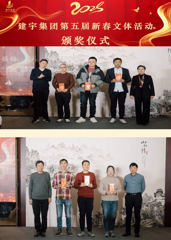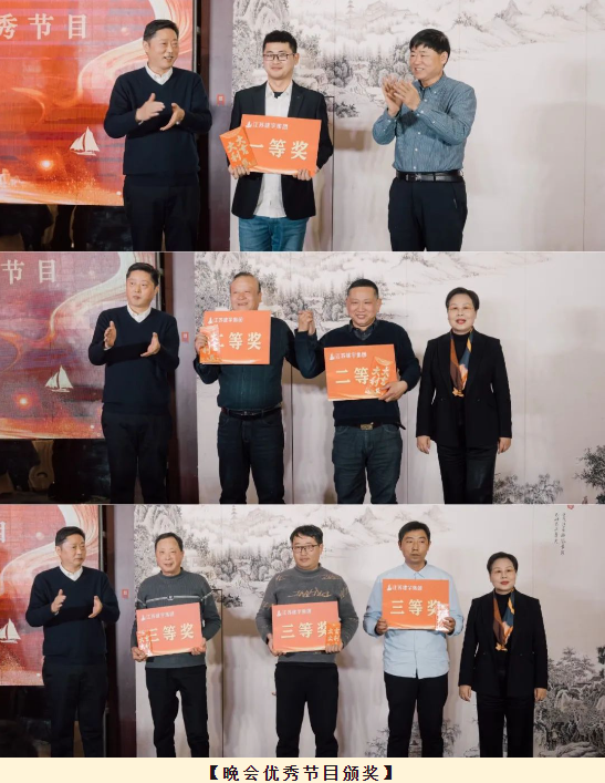 本屆年會(huì)以“銀蛇福至 建宇展翅”為主題,集團(tuán)全體人員在年會(huì)上分享喜悅,踴躍展示才藝。集團(tuán)董事長(zhǎng)管民良攜高管團(tuán)隊(duì)傾情獻(xiàn)唱,與全體員工共享這一歡樂(lè)時(shí)光。并為文體比賽、征文比賽獲勝者頒獎(jiǎng),為晚會(huì)幸運(yùn)者抽獎(jiǎng)。