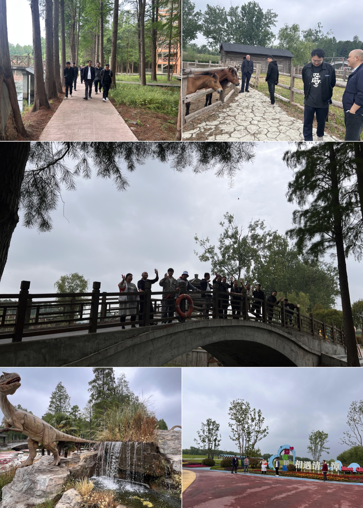 下船后,大家沿著公園蜿蜒曲折的小徑悠然漫步。小徑兩旁,繁花似錦,綠草如茵,仿佛是大自然精心繪制的一幅畫卷。途徑四季花海,更是美不勝收,不同顏色種類的花卉在此匯聚,綻放出各自獨特的魅力,讓人仿佛置身于花的海洋。大家時而駐足觀賞,用相機捕捉下夏日盛景中的每一個精彩瞬間;時而歡聲笑語,分享著彼此在工作與生活中的趣事。一場濕地徒步與自然觀察活動就此展開,大家仔細探尋著濕地中的每一處奇妙景觀,仿佛置身于一個充滿奧秘的生態(tài)課堂。行至小徑中段,揭陽塔映入眾人眼簾。大家難掩興奮,紛紛拾級而上,登高觀景。從塔頂下來后,不遠處便是“侏羅紀”主題區(qū)域。區(qū)域內(nèi)一尊尊恐龍模型造型逼真、姿態(tài)各異,以獨特的方式向大家問好。離開“侏羅紀”區(qū)域,小型動物園出現(xiàn)在眼前。圍欄內(nèi),小矮馬、小羊和小兔子們正悠閑地吃著草,大家紛紛圍上前去,與小動物們展開互動。