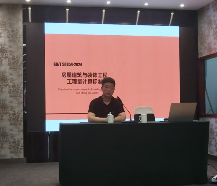 南京市場部負責人陳超主講有關 2024 專業(yè)計價標準的宣貫解讀。他不僅為參培人員深度解析了新計價標準出臺的重大意義、目的以及修訂原則,還對新計價標準的特點特征、主要變化以及使用過程中需要注意的問題進行了詳細講解,為參會人員如何準確、高效地使用新標準提供了極具針對性的指導意見。